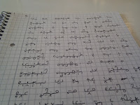 I recently came across an old note pad I had been using about two years ago. I like to keep all my old note pads; they're like raw dumps of what I was doing then and the ideas I was playing around with. This particular one was the one I was using while reading the World's Writing Systems, the mother lode for anyone interested in writing systems.